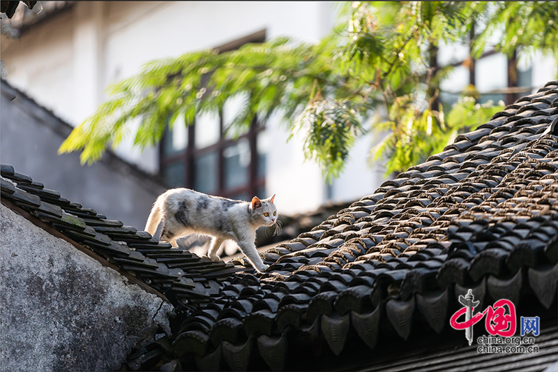 在毛孩子眼里,這就是包容一切活動(dòng)的「游樂(lè)場(chǎng)」,片片青瓦上留下梅花印?;蛟S你也該往古鎮(zhèn)的屋頂上瞧,檐角翹伸、清風(fēng)古韻,讓人心曠神迷。或同那只貓一樣攀上高處,推窗看那水那橋,那木門青瓦,就是江南水鄉(xiāng)的具象。