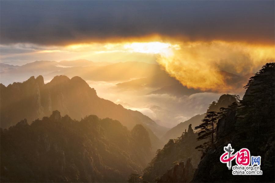 只有一個(gè)黃山:日出霞光盡染 云霧輕舒漫卷