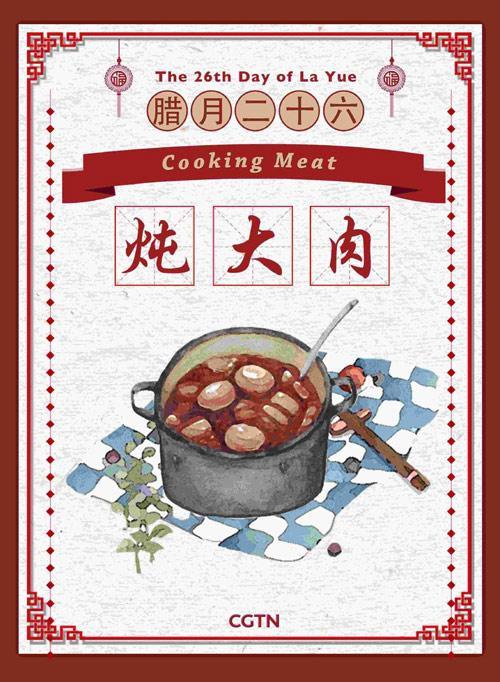 臘月二十六這天,許多家庭通常都會燉豬肉和吃豬肉。不養(yǎng)豬的家庭會去當(dāng)?shù)丶匈I一大塊肉。在過去的農(nóng)業(yè)社會,人們只有在春節(jié)才能吃上肉。吃肉也代表著一年中最盛大的慶?;顒印?/p>
