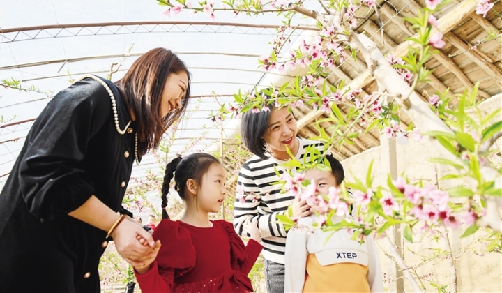 市民在金塔縣金塔鎮(zhèn)金大村的溫室里賞花。鄭 華 曹紅祖 攝