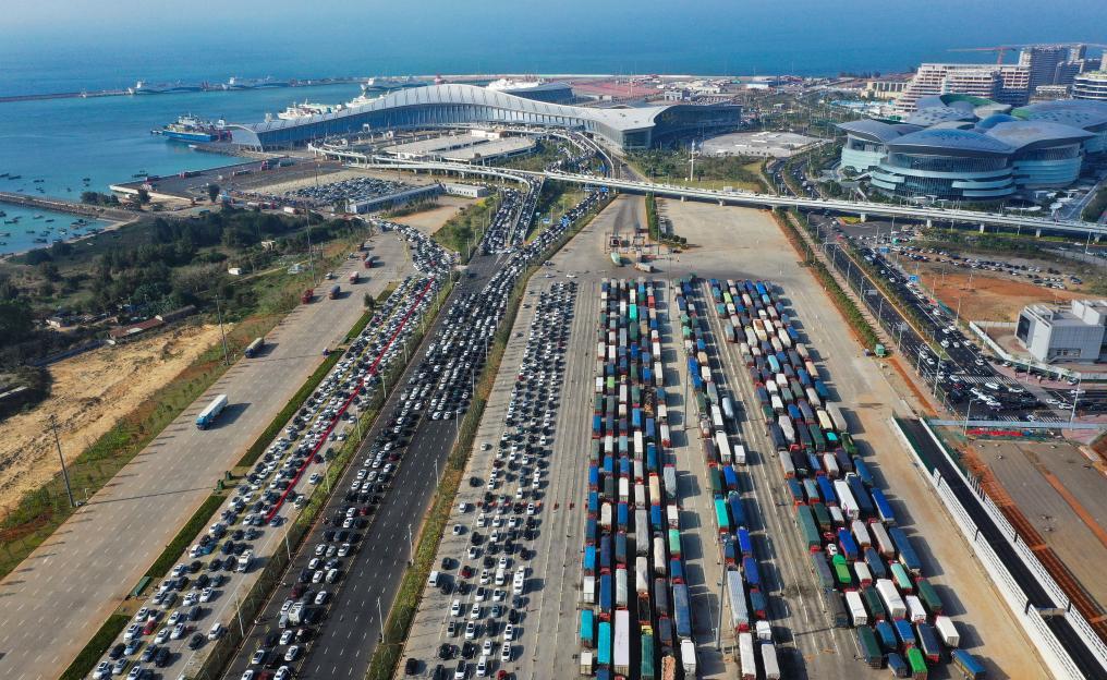 ??谑薪煌ㄟ\輸和港航管理局發(fā)布的信息顯示,截至2月19日15時,預約出島小車總數(shù)約2萬輛,已運送出島約1萬輛,全天預約待出島約1萬輛。新海港港區(qū)和港外待渡車場呈現(xiàn)飽和狀態(tài),疏運仍需較長時間。