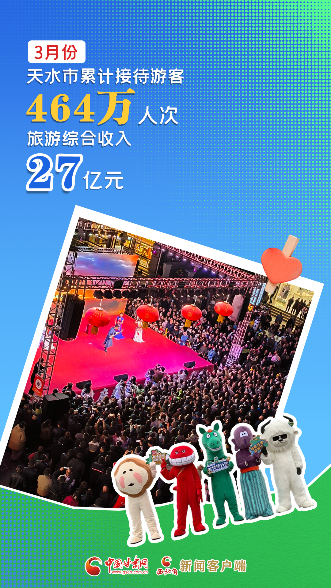 海報(bào)|3月份天水市累計(jì)接待游客464萬人次 實(shí)現(xiàn)旅游綜合收入27億元