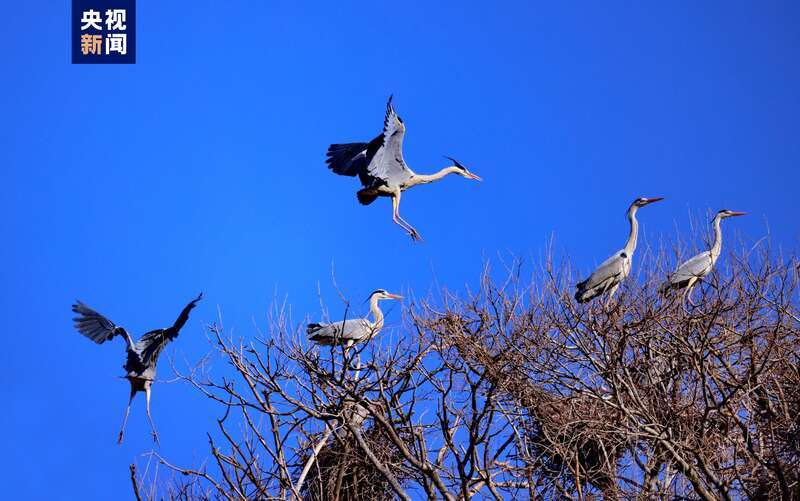 隨著氣溫回升,位于子午嶺腹地的甘肅省慶陽市合水縣太白鎮(zhèn),有成群結(jié)隊的蒼鷺如約從南方飛來。它們或落在樹冠,偎依在一起,或維修著往年搭建好的巢穴,開啟新一輪的繁衍生息。子午嶺腹地是天然的生態(tài)林區(qū),近年來,當?shù)鼐C合實施固溝保塬、退耕還林、植樹造林等工程,森林覆蓋率達到69.82%,引來眾多珍稀鳥類繁衍生息。(總臺記者 焦健)