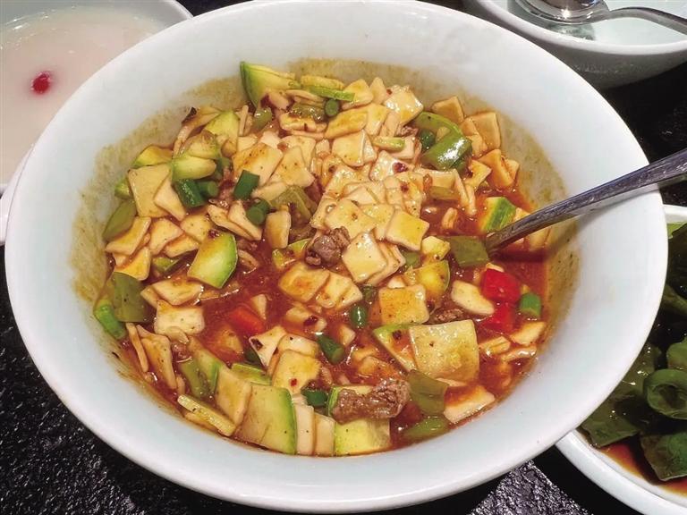 有固態(tài)和液態(tài)兩種形式,酸甜麻辣搭配油潑辣子,直接擊穿饑餓。蘭州炒面片,面片也是蘭州人喜歡的家常面之一,面片分帶湯和不帶湯的,不帶湯的稱炒面片,蘭州炒面片也是一道風味獨特的美食,無論是大街小巷還是酒店飯館都有它的一席之地,面片炒的柔韌筋道,番茄炒出的湯汁兒酸酸甜甜,多種蔬菜炒出的營養(yǎng)美味,秘制油潑辣子的香,酸甜麻辣香都集齊了,再搭配上筋道的牛腱子肉、虎皮辣椒,麻辣香美可謂一絕。