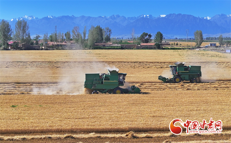 眼下,位于祁連山下的民樂縣南古鎮(zhèn)毛城村800畝連片小麥種植基地上,機聲隆隆,農(nóng)機手們駕駛收割機穿梭往返麥田之中搶收小麥,一派忙碌的豐收景象。近期,隨著民樂縣沿祁連山冷涼山區(qū)小麥迎來成熟季,民樂縣種植的26萬畝小麥進入了繁忙的收割期。