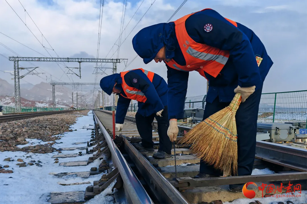 武威工務(wù)段芨嶺、山丹線路車間以雪為令,組織干部職工清掃道岔尖軌、滑床板、轉(zhuǎn)轍機(jī)等關(guān)鍵部位的積雪積冰,確保線路狀況良好。