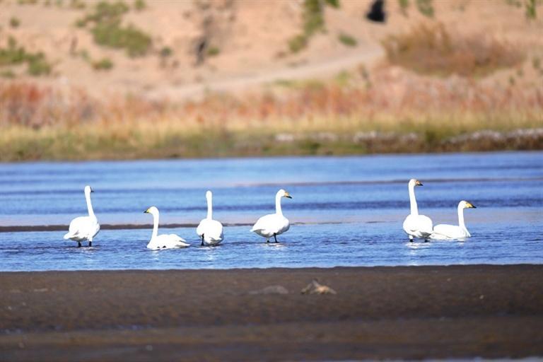 近日,高臺(tái)縣黑河濕地多次監(jiān)測(cè)到大天鵝種群,它們的翩翩降臨,標(biāo)志著天鵝一年一度的越冬之旅正式開啟。 大天鵝是雁形目鴨科天鵝屬鳥類,又稱黃嘴天鵝,全身潔白,僅頭稍沾棕黃色;喙黑色,上喙基部黃色,喙端黑色;跗跖、蹼、爪也為黑色,是國(guó)家二級(jí)保護(hù)動(dòng)物。天鵝對(duì)棲息地的選擇極為苛刻,它們的到來是高臺(tái)縣黑河濕地生態(tài)環(huán)境質(zhì)量?jī)?yōu)良的有力證明。