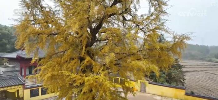 在江西撫州臨川區(qū),一株千年銀杏樹(shù)迎來(lái)了最佳觀賞期。一片片黃色的銀杏葉猶如一串串金色風(fēng)鈴,掛滿樹(shù)梢。