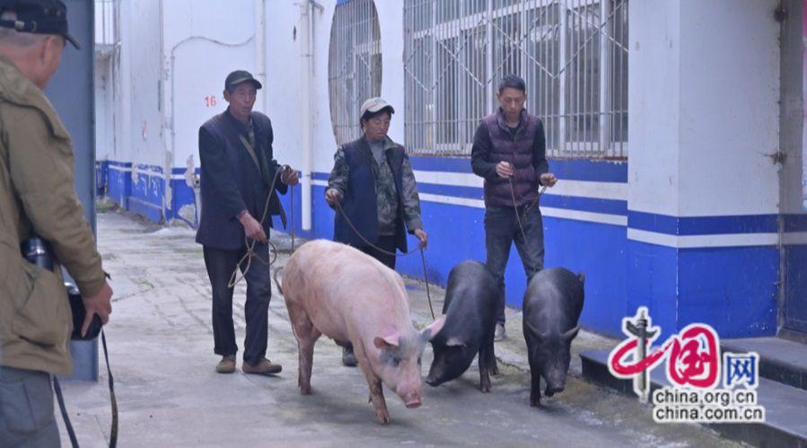 2024年11月20日,彝族老鄉(xiāng)在站臺上接豬。原波 攝