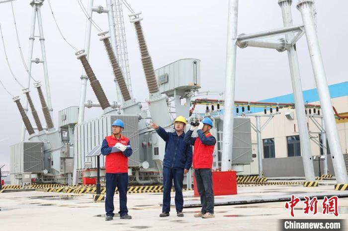 國(guó)網(wǎng)慶陽(yáng)供電公司工作人員在華能翼珍風(fēng)光電站巡視設(shè)備運(yùn)行情況。楊馥毓 攝