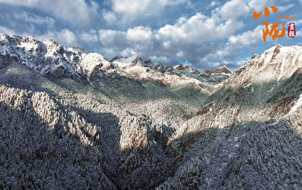 積雪如同軟綿綿的地毯鋪滿了整個(gè)官鵝溝,陽(yáng)光透過(guò)云層照射在這片被雪覆蓋的世界,閃爍著溫柔的光芒。