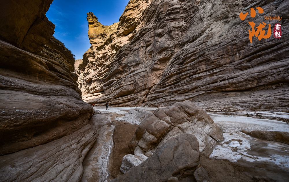 峽谷悠長(zhǎng),有的地方寬敞,有凹進(jìn)去的平臺(tái),有的地方卻是“一線天”,非常的狹窄,透露出深邃的神秘感。