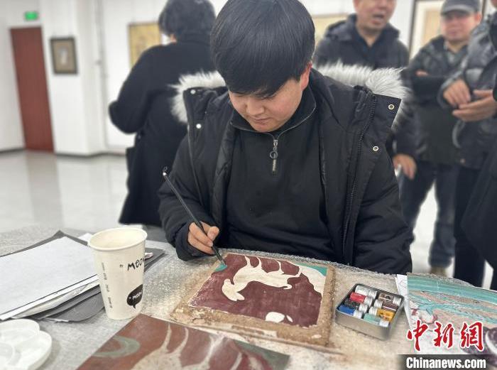 12月17日,由蘭州市七里河區(qū)委宣傳部、七里河區(qū)文體旅局聯(lián)合舉辦的“大漠孤陽(yáng)映彩霞 敦煌神韻美如畫(huà)”新時(shí)代文明實(shí)踐主題活動(dòng)暨敦煌巖彩畫(huà)書(shū)畫(huà)藝術(shù)展拉開(kāi)帷幕。圖為繪畫(huà)愛(ài)好者現(xiàn)場(chǎng)學(xué)習(xí)繪制巖彩畫(huà)。楊娜 攝