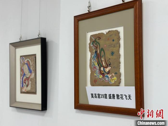 12月17日,由蘭州市七里河區(qū)委宣傳部、七里河區(qū)文體旅局聯(lián)合舉辦的“大漠孤陽(yáng)映彩霞 敦煌神韻美如畫(huà)”新時(shí)代文明實(shí)踐主題活動(dòng)暨敦煌巖彩畫(huà)書(shū)畫(huà)藝術(shù)展拉開(kāi)帷幕。圖為展出的敦煌莫高窟壁畫(huà)題材巖彩畫(huà)。楊娜 攝