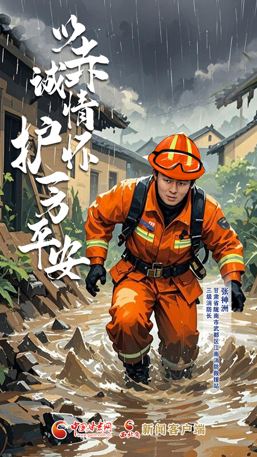 手繪海報(bào)|甘肅省隴南市武都區(qū)江南消防救援站三級消防長張神洲:以赤誠情懷 護(hù)一方平安