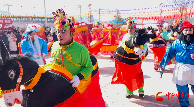春節(jié)期間,華亭市各曲子戲班的演出由農村的廣場到家庭院落,縣城的機關單位到大街小巷,隨處可見。曲子戲通常以吹拉彈唱、說春遛丑等角色,形成大場子、小場子、跑場子三種演唱形式,表演以極具華亭風情的念唱、秧歌小調、獅子旱船、民間舞蹈為主。生老凈丑競相登場,文武場面與大戲不相上下,表演風格獨特,濃濃的鄉(xiāng)土味瞬間會勾起人們對家鄉(xiāng)的熱愛之情。