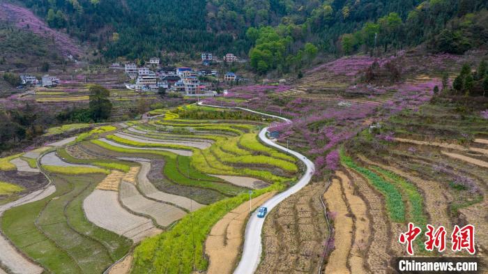 3月15日,在廣西田林縣浪平鎮(zhèn)浪平村,滿山盛開的桃花美景如畫。黃數(shù)情 攝