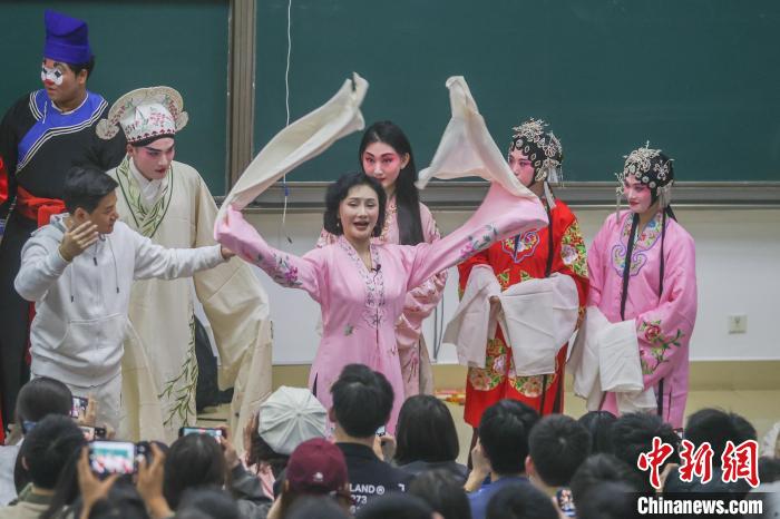 2024年3月,江西南昌,南昌大學(xué)贛劇藝術(shù)鑒賞課堂上,國家級非物質(zhì)文化遺產(chǎn)代表性項(xiàng)目“贛劇”代表性傳承人陳俐正在給學(xué)生上課。(資料圖)劉力鑫 攝