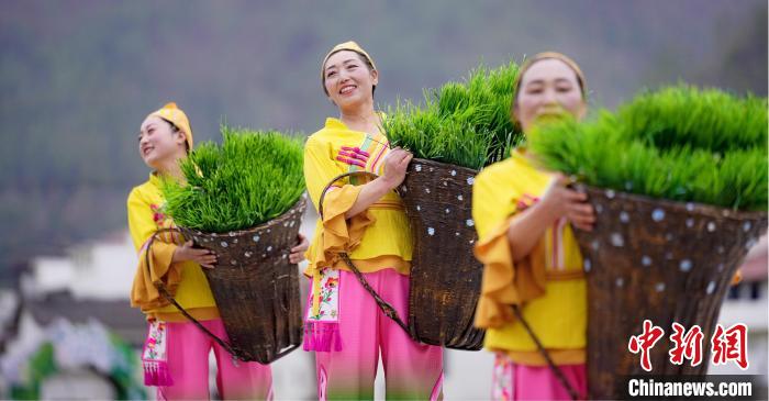 依托黎壩鎮(zhèn)層疊梯田的天然弧度與蒼翠山谷的立體聲場,該劇將鎮(zhèn)巴民歌、陜南民俗等非遺元素融入山水實景。春之序曲《山歌迎賓》中,油菜花海間百人山歌陣,以原生態(tài)多聲部民歌編織迎賓盛景;夏之華章《綠的交響》里,非遺薅草鑼鼓與現(xiàn)代音樂碰撞出農(nóng)耕文明的力與美;秋之禮贊《金的節(jié)奏》在陽光下呈現(xiàn)打連枷聲浪與稻浪共舞的豐收奇景;冬之情書《紅的濃情》則通過圍爐陜南說唱,在吊爐光影間訴說巴山兒女的熾熱情懷。