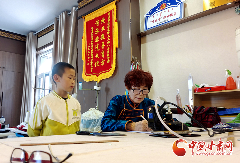 “孩子愛出汗,帽子要輕薄透氣,衣服的花紋要傳統(tǒng)的‘夏格拉繡’”5月18日,在肅北縣蒙古族服飾國家級(jí)非遺傳承人娜仁其其格的工作室內(nèi),牧民劉麗青正在為兒子“定制”傳統(tǒng)肅北蒙古族服飾。這件融入現(xiàn)代審美的民族服裝,將成為孩子節(jié)日活動(dòng)和校園生活中的“文化名片”。
