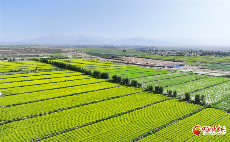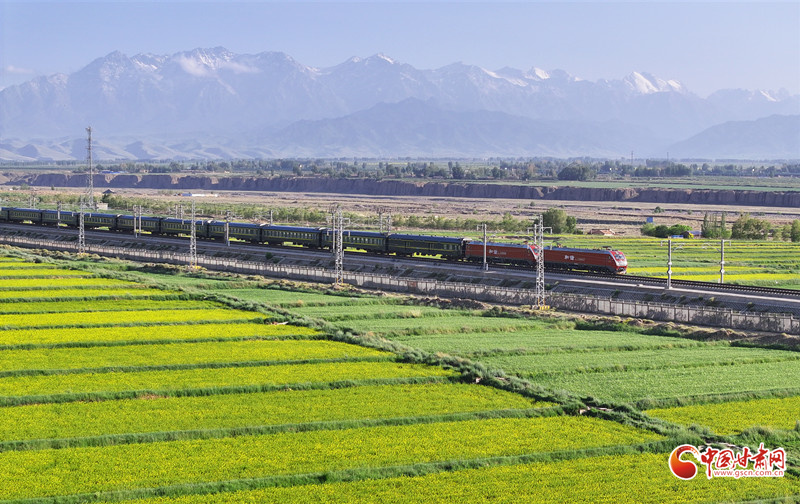近日,祁連山下的民樂縣三堡鎮(zhèn)徐寨村的油菜花競相綻放,與通村公路、鄉(xiāng)村民居和行駛的火車交相輝映,構(gòu)成一幅美麗的鄉(xiāng)村田園美景。