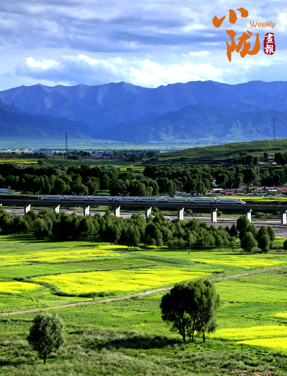 綠浪在鐵軌兩側(cè)翻涌,演奏著夏日歡快的音符,銀色列車如琴弦穿過田野,指揮著這場盛大的樂曲。這里的每一寸土地似乎都披上了一層華麗的金色外套,宛如世外桃源。濃郁的花香令人陶醉,壯美的風(fēng)景令人禁不住手舞足蹈,引吭高歌,流連忘返。