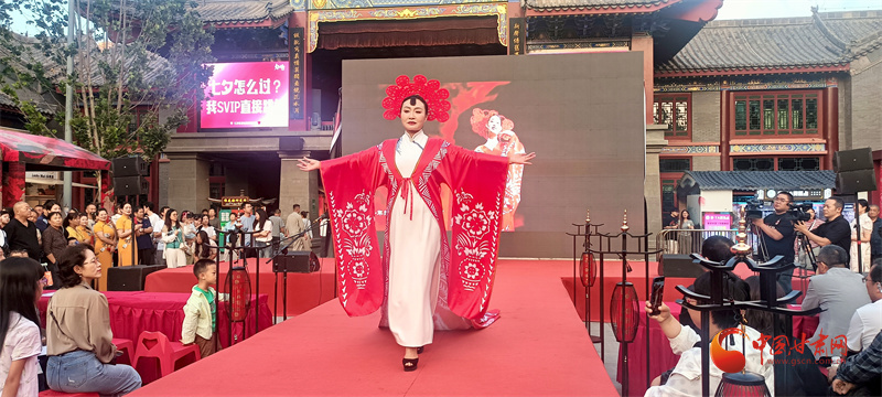 街舞《愛(ài)的節(jié)拍》則將現(xiàn)代元素與七夕的浪漫相結(jié)合,活力四射的舞蹈點(diǎn)燃了現(xiàn)場(chǎng)氣氛。沉浸式旗袍大秀中,模特們身著典雅旗袍,邁著優(yōu)雅步伐,展示了東方女性的柔美與魅力,贏得陣陣掌聲。鼓子表演《蘭州眉戶賣水》更是讓觀眾領(lǐng)略到了地方特色文化的魅力,其獨(dú)特的唱腔和韻味令人陶醉。