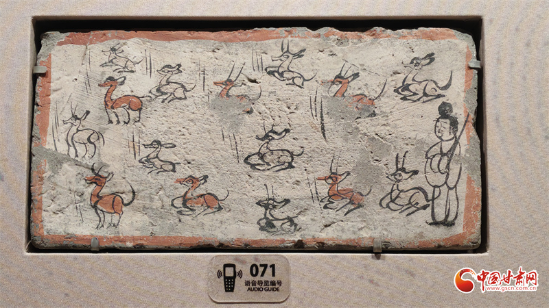 在博物館的“古冢丹青——高臺(tái)魏晉十六國(guó)時(shí)期墓葬壁畫藝術(shù)陳列”展廳里,記者看到,《二牛耕地畫像磚》生動(dòng)再現(xiàn)了當(dāng)時(shí)的農(nóng)耕技術(shù):兩頭耕牛架著直轅犁,后隨的男子一手扶犁一手揚(yáng)鞭,展現(xiàn)了典型的“二牛抬杠”耕作方式?!赌谅箞D壁畫磚》則描繪了古人放牧鹿群的獨(dú)特場(chǎng)景,為研究當(dāng)時(shí)的畜牧業(yè)發(fā)展提供了珍貴資料。