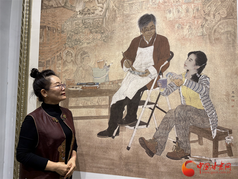 王亞林說,她這幅畫里的學(xué)生是按照自己來畫的,在敦煌壁畫的世界里,每個(gè)人都是虔誠的學(xué)習(xí)者。