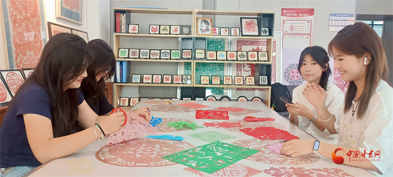 蘭州職業(yè)技術(shù)學(xué)院非物質(zhì)文化遺產(chǎn)學(xué)院剪紙工作室,史婷老師正在教同學(xué)們剪紙。“咔嚓、咔嚓……”的剪紙聲如美妙的音符,那樣熟悉,又那樣動(dòng)聽。