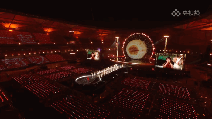光,也是這場敘事中無聲的語言。燈光總監(jiān)董江從鴻蒙系統(tǒng)的開機動畫中汲取靈感,將極具辨識度的“星環(huán)”造型貫穿整個場館空間。設(shè)計團隊不僅用數(shù)百臺燈光設(shè)備在舞臺上空構(gòu)建了一個直徑31米的超級光環(huán),更在體育場內(nèi)豎立起8組高達24米的立體燈光塔,讓每一位觀眾都被籠罩在“在一起”的視覺敘事之中。據(jù)總導(dǎo)演田梅介紹,那打動了無數(shù)網(wǎng)友、點綴在觀眾席上的四萬盞燈球,并非輕易鋪就的背景,而是歷經(jīng)超百位工人三次接力安裝、反復(fù)調(diào)試才得以呈現(xiàn)的呼吸光海。最初,這一設(shè)計曾因執(zhí)行難度而面臨調(diào)整,但在總導(dǎo)演田梅的堅持下,最終被完整保留。在她看來,這片星海是對盛典主題內(nèi)核的生動詮釋:“‘在一起,就可以’不僅是一句口號,更是對這個時代最溫暖的注腳。它告訴我們:再遙遠的夢想,也終將在并肩同行中,變得觸手可及。”隨著節(jié)目播出,燈球呈現(xiàn)出“在一起,就可以”“鴻蒙星光盛典”等字符,明亮而浪漫。四萬星光分散在每一張座椅上,如同散落在千行百業(yè)、千家萬戶中的每一個開發(fā)者與用戶;它們又能連成一片星海,展現(xiàn)出“在一起,就可以”的力量。