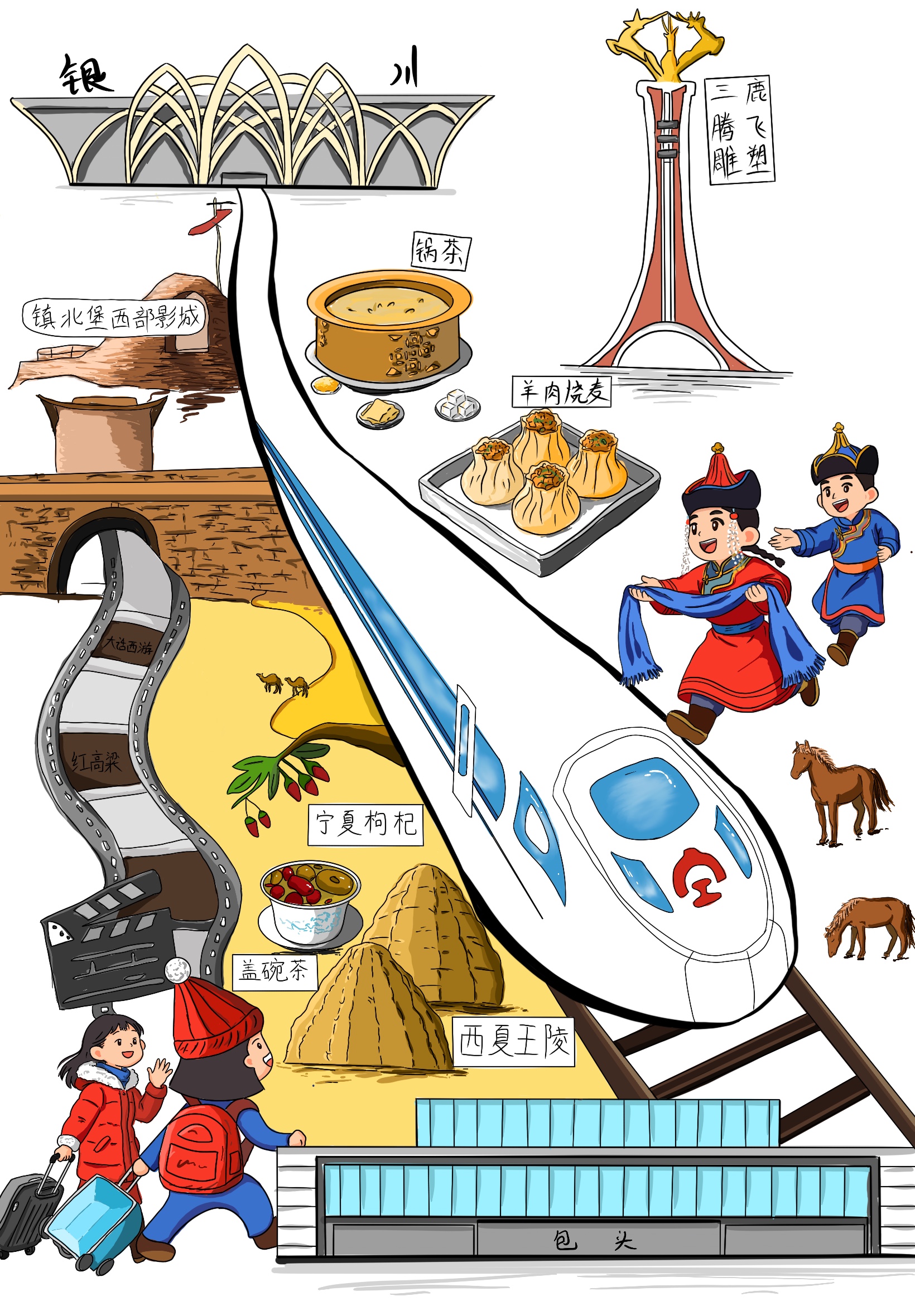 不負(fù)山河浩蕩,不負(fù)星河燦爛。這條貫穿西北的鋼鐵巨龍,不僅是一條便民出行的快捷線,更是助力發(fā)展的經(jīng)濟(jì)線、促進(jìn)交流的文化線。無(wú)論是由此帶來(lái)的沿線旅游、產(chǎn)業(yè)、就業(yè)的發(fā)展,還是鐵路企業(yè)自身建設(shè),都將呈現(xiàn)出勃勃生機(jī),為西北大地帶來(lái)更多的發(fā)展活力與無(wú)限可能。面向“十五五”,包銀高鐵必將推動(dòng)沿線經(jīng)濟(jì)社會(huì)發(fā)展駛?cè)?ldquo;快車(chē)道”,在新征程上續(xù)寫(xiě)更輝煌的篇章。(文字:陳浩媛  漫畫(huà):李雨晴,朱雪菲)