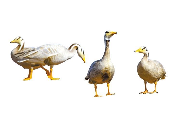 清晨的小蘇干湖最是動人。霧靄在湖面緩緩流動,將遠處的阿爾金山勾勒成淡墨色的剪影,蘆葦叢中突然傳來一陣“咕咕”的低鳴,幾只斑頭雁正抖落翅膀上的霜花,小心翼翼地走向水邊。它們是較早抵達的“客人”,每年初冬都會帶著雛鳥從青藏高原飛來,在這里補充能量。斑頭雁披著一身深淺不一的灰褐色羽毛,頭頂白色,飾有兩道黑色斑紋,在晨光中看去,宛如戴著一頂別致的黑白禮帽,顯得格外俏皮。它們不常遠行,多數時候只是在淺水區(qū)踱步,用扁平的喙撥開冰層下的水草,啄食藏在其中的水生昆蟲和植物種子。