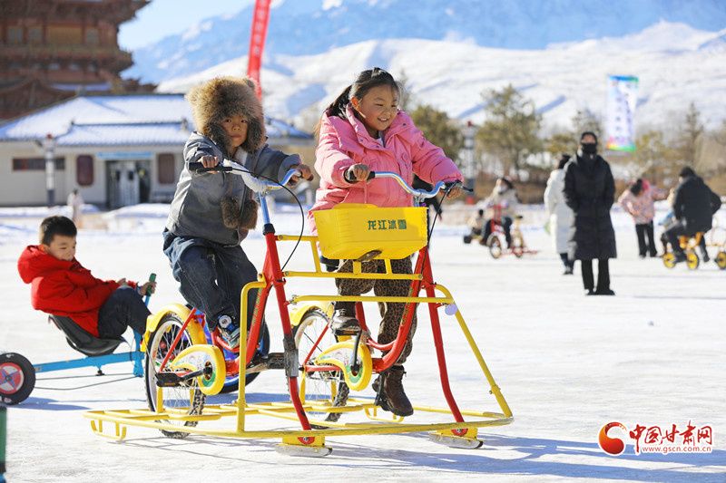 1月8日,民樂縣舉辦第三屆“冰雪嘉年華”暨冬春季全域旅游推廣活動(dòng)。游客們紛紛在冰雪樂園暢玩冰上自行車、充氣碰碰球、親子雪圈等冰雪娛樂項(xiàng)目,盡情感受冰雪運(yùn)動(dòng)帶來的快樂和趣味。