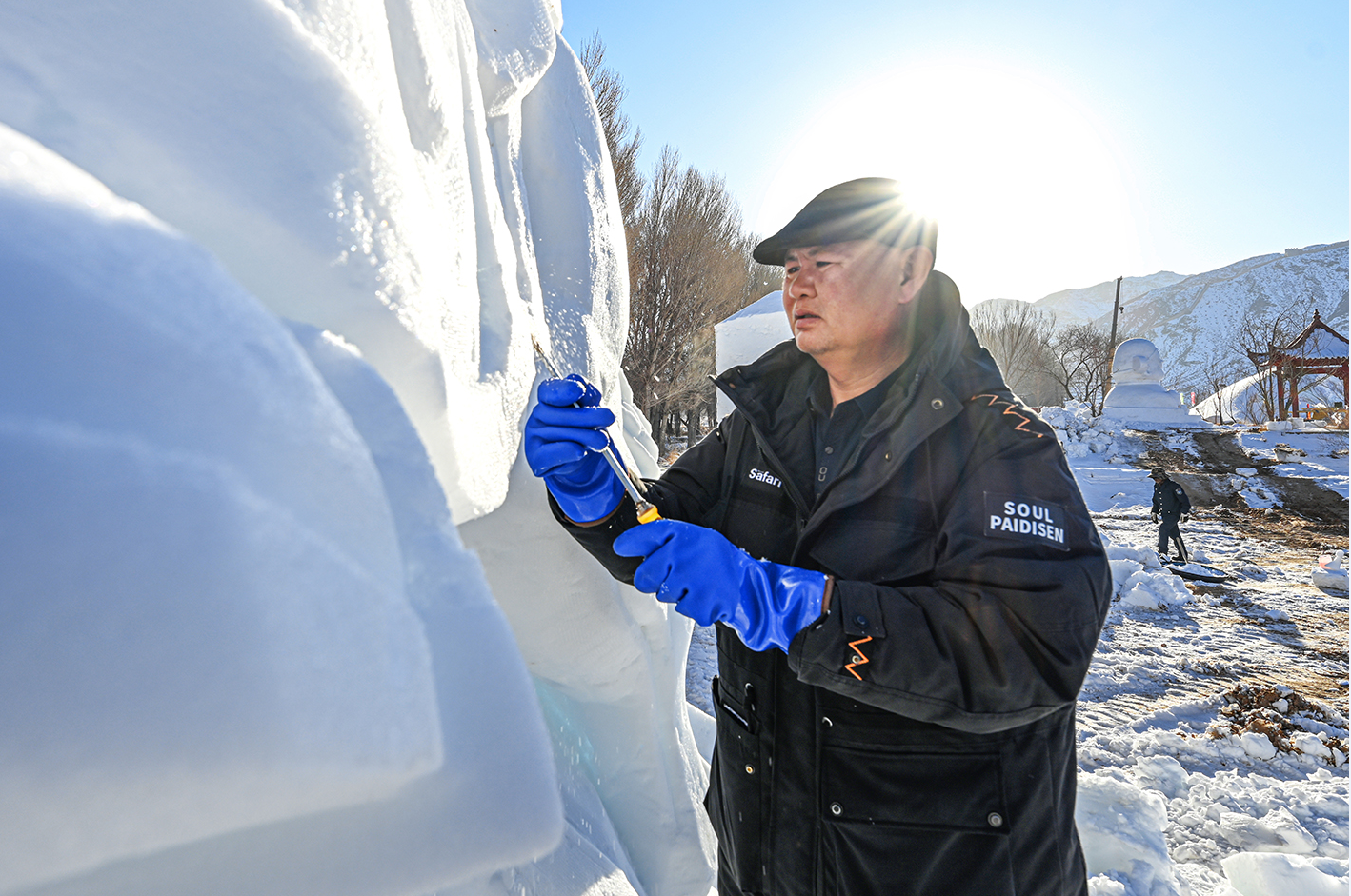 中國(guó)甘肅網(wǎng)1月13日訊 據(jù)嘉峪關(guān)日?qǐng)?bào)報(bào)道(融媒體中心記者 李巍 攝)揚(yáng)鏟塑造型,落刀雕精彩。1月10日,懸壁長(zhǎng)城腳下,《昭君出塞》《九尾靈狐》《喜財(cái)神》等雪雕作品,在匠人們的精雕細(xì)琢中漸漸揭開(kāi)“面紗”。