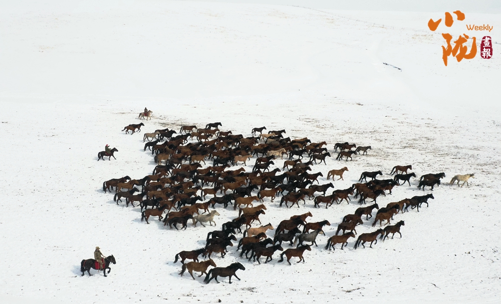 馬蹄踏雪,奔馳如風,揚起的鬃毛在空中甩出燦金軌跡。每一起落,皆是對古老牧歌的深情復刻,祁連的巍峨、絲路的遼遠,都被寫入這磅礴起伏的呼吸之間。