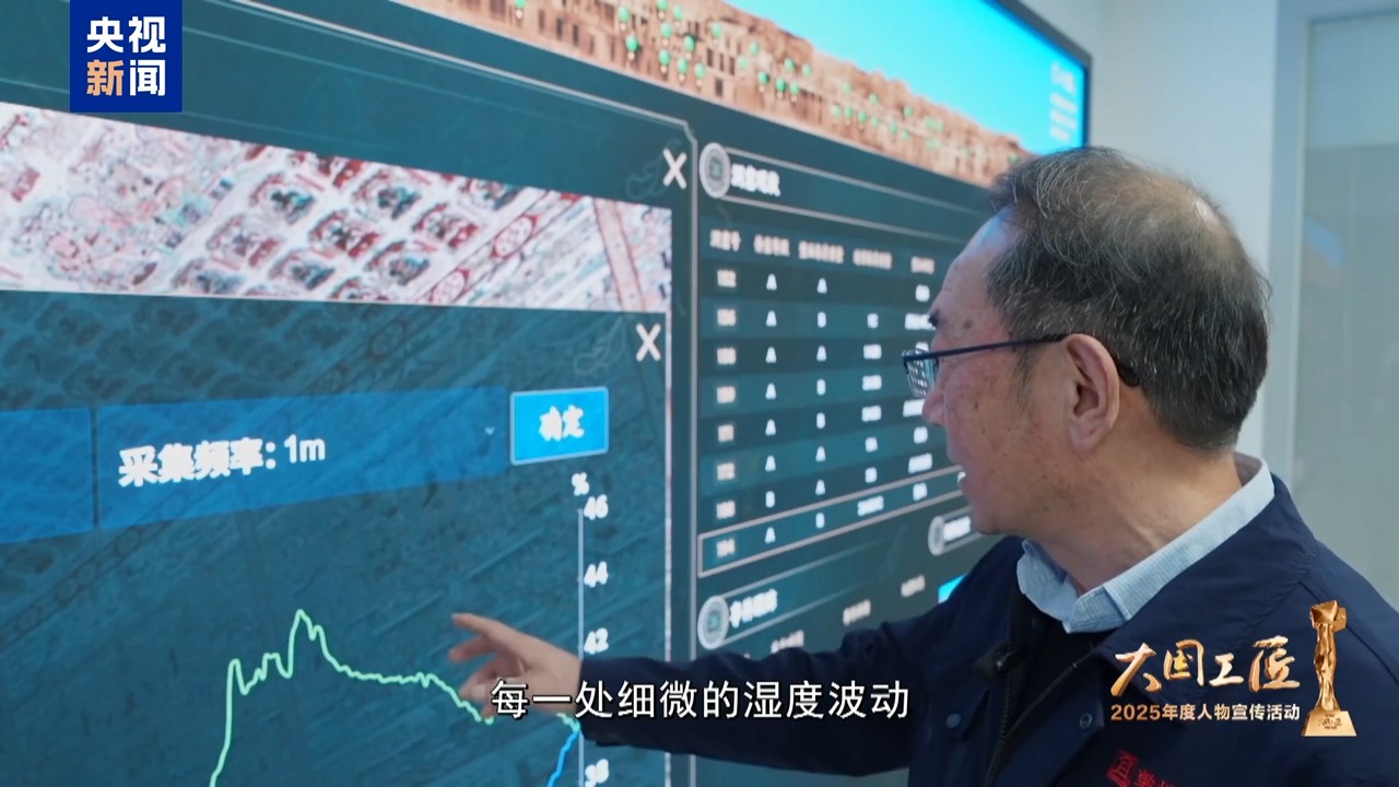 每一處細(xì)微的濕度波動都會給壁畫帶來影響,樊再軒仔細(xì)觀察著石窟監(jiān)測系統(tǒng)上的數(shù)據(jù),隨后又帶領(lǐng)團(tuán)隊(duì)進(jìn)入洞窟,對壁畫進(jìn)行復(fù)查。