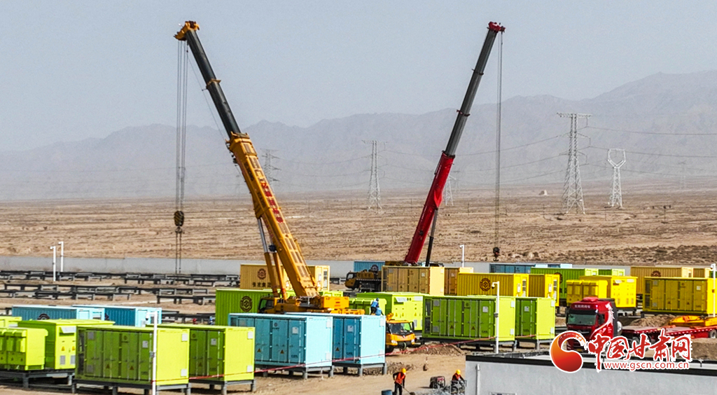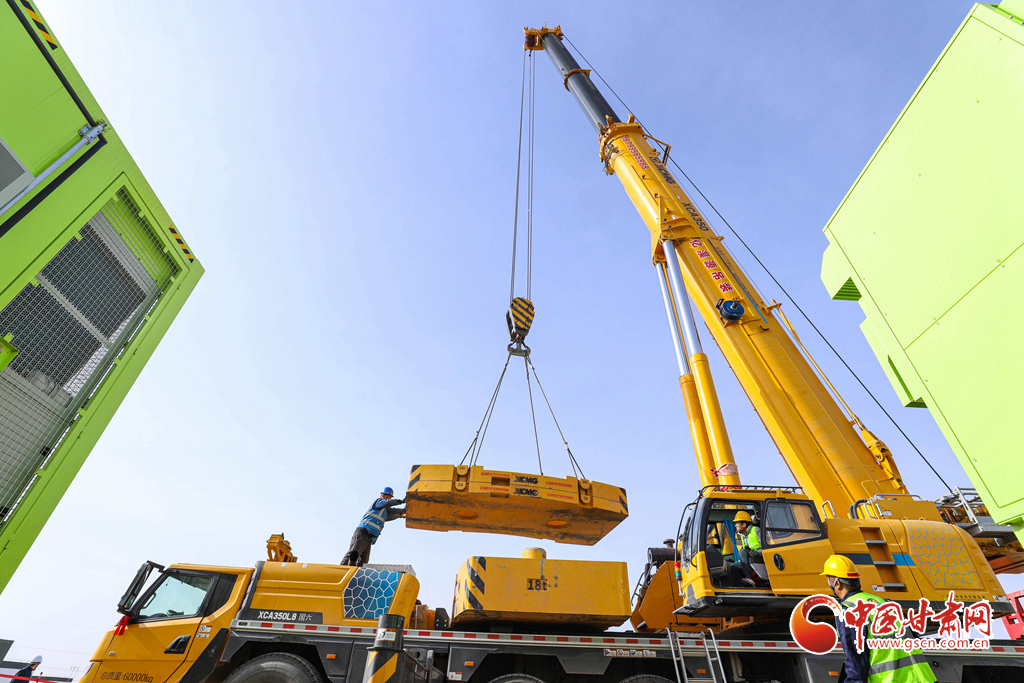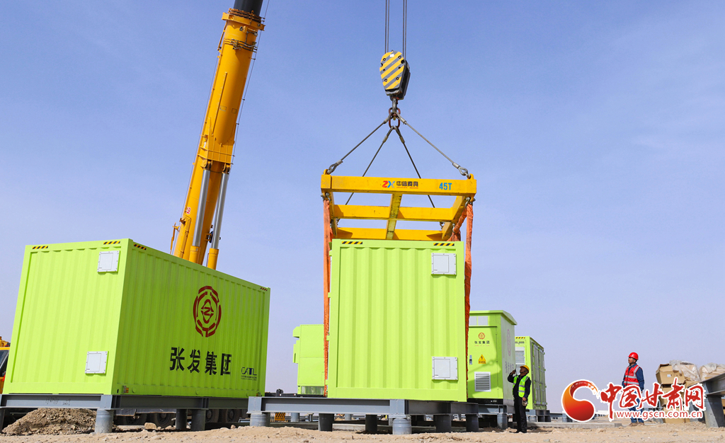 3月19日,張掖市山丹縣東樂灘上,工程建設(shè)者們正在進(jìn)行儲(chǔ)能電站項(xiàng)目電池倉吊裝前的準(zhǔn)備。
