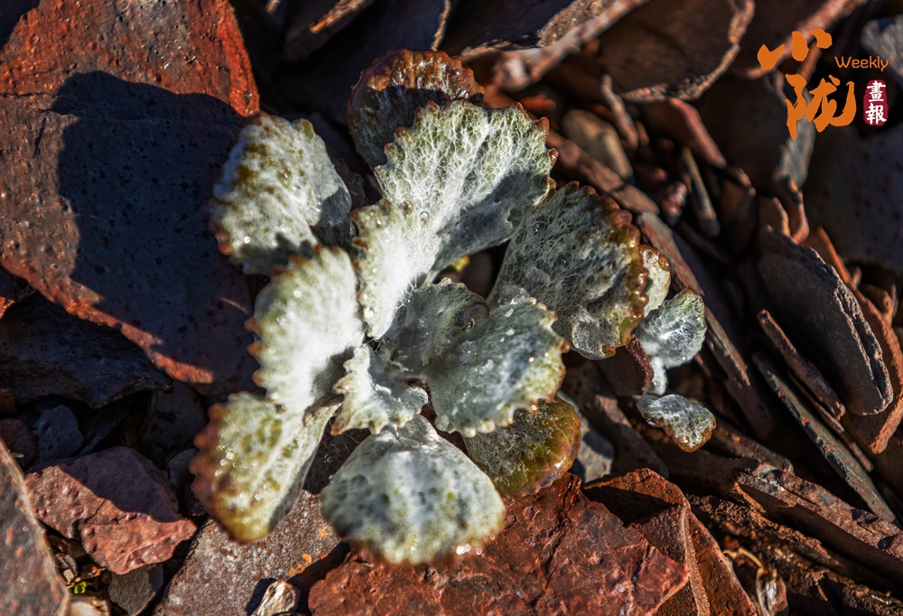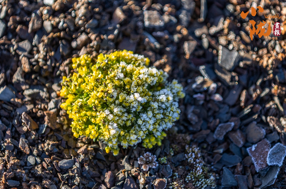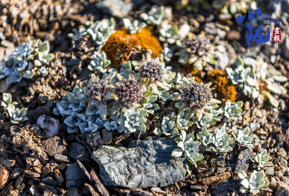 抱莖葶藶,屬于十字花科葶藶屬的墊狀高山植物。它呈緊湊的團塊狀,葉片密集,表面覆有白色絨毛,頂端開有細碎的黃色小花,生長在碎石環(huán)境中,這種形態(tài)能幫助它適應(yīng)高海拔的低溫、強風(fēng)與強紫外線環(huán)境,減少水分流失。